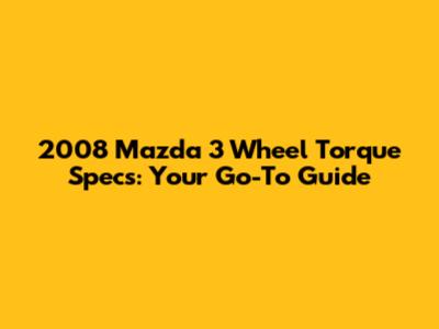 2008 Mazda 3 Wheel Torque Specs: The Complete Guide