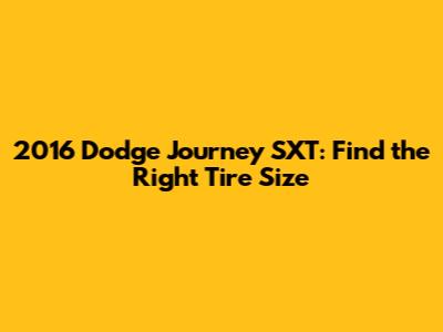 In summary, sticking with the standard 225/65R17 tire size for your 2016 Dodge Journey SXT is generally the best approach. It ensures that your vehicle performs as intended and maintains its safety features. Always verify the size on your vehicle or in your owner's manual before purchasing new tires to avoid any issues.