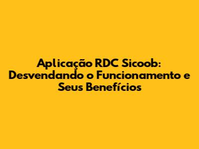 Como Funciona a Aplicação RDC Sicoob?