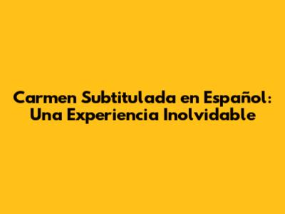 Carmen Subtitulada En Español: Una Guía Completa