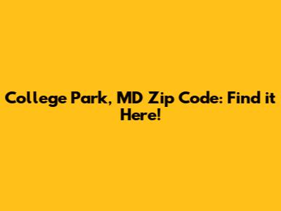 College Park, MD Zip Code: Find It Here!
