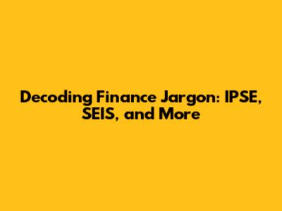 Decoding Finance Jargon: IPSE, SEIS, And More