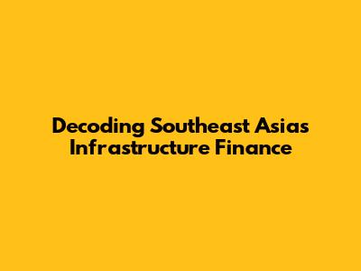 Decoding Southeast Asia's Infrastructure Finance