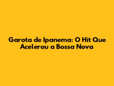 Garota De Ipanema: O Hit Que Acelerou A Bossa Nova