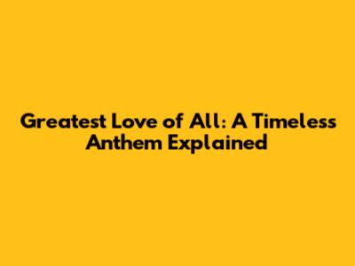 Greatest Love Of All: A Timeless Anthem Explained