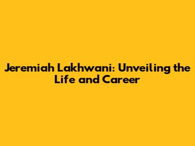 Jeremiah Lakhwani: Unveiling The Life And Career