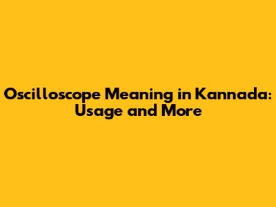 Oscilloscope Meaning In Kannada: Usage And More