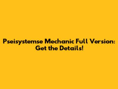 Hey guys! Are you looking to dive deep into the world of Pseisystemse Mechanic? Well, you've come to the right place! This article will give you the lowdown on what the full version offers, why it's worth checking out, and everything else you need to know. Let's get started!