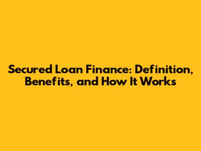 Secured Loan Finance: Definition, Benefits, And How It Works