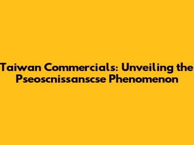 Taiwan Commercials: Unveiling The Pseoscnissanscse Phenomenon