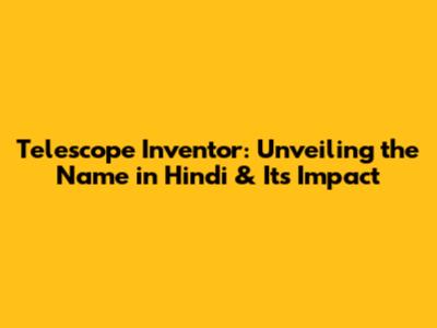 Telescope Inventor Name in Hindi: Pronunciation & Significance